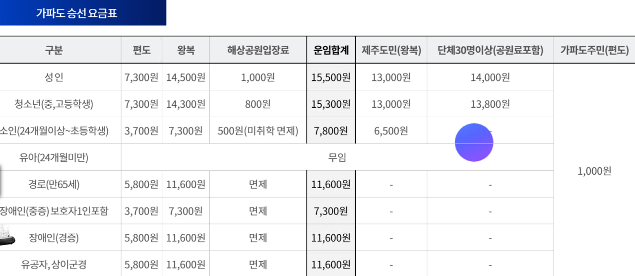 승선요금표